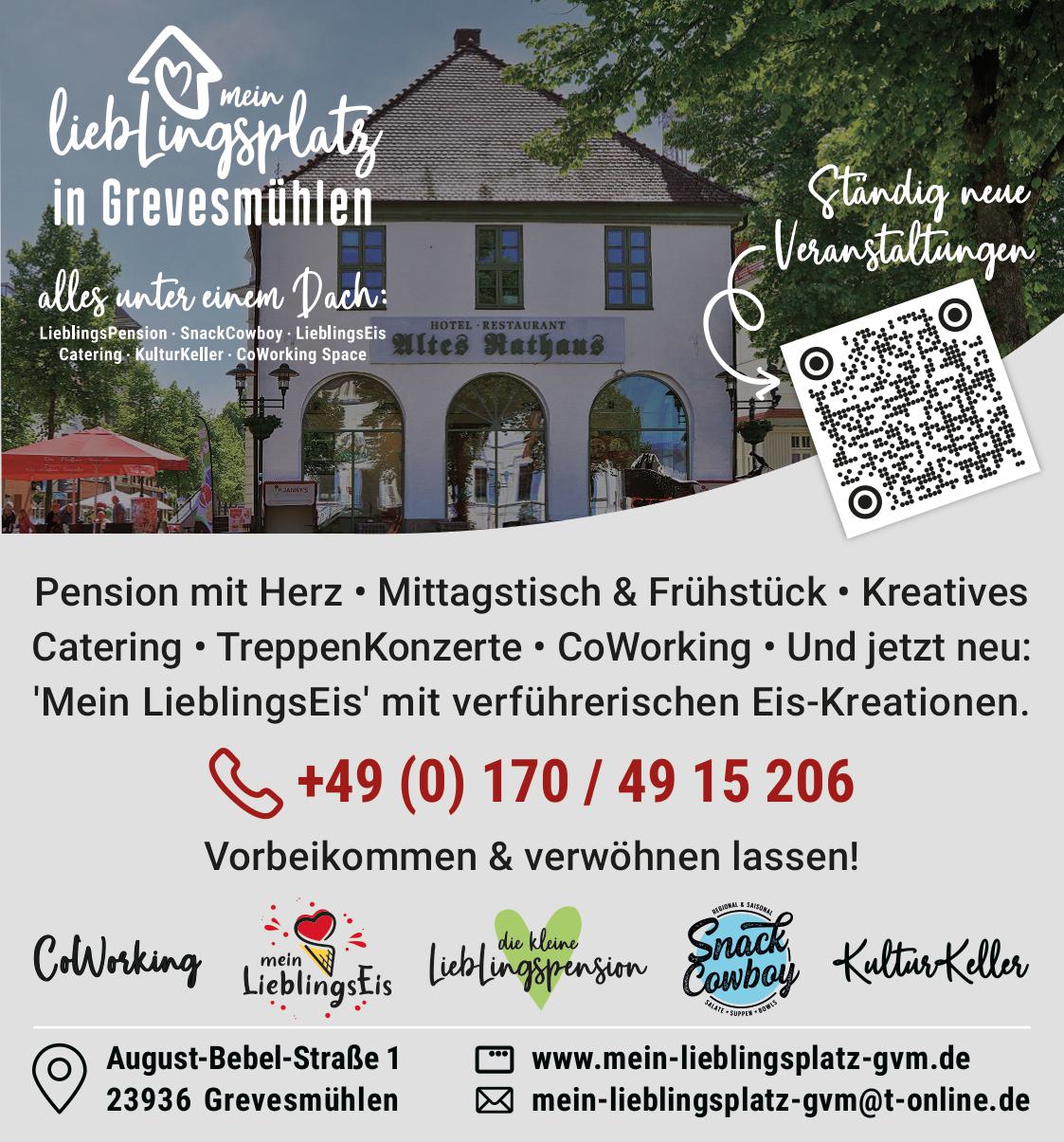 Mein Lieblingsplatz in Grevesmühlen ist ein idealer Ort für Veranstaltungen und Zusammenkünfte. Ob Sommerfeste, Konzerte oder Märkte in der Stadt von Grevesmühlen zieht Menschen aus der Umgebung an und schafft eine herzliche Gemeinschaftsatmosphäre, die unvergessliche Erinnerungen schafft.